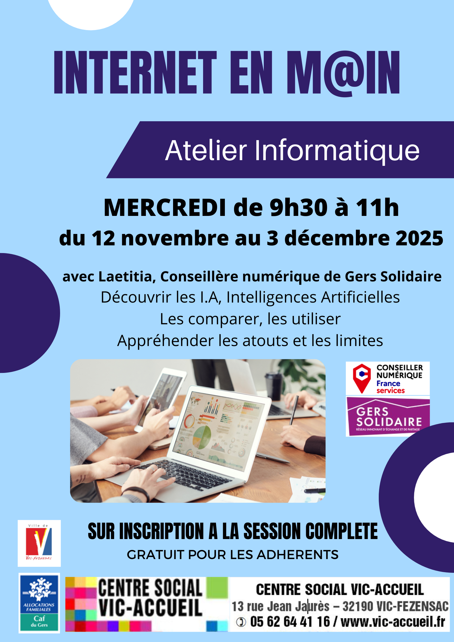 Le centre social Vic-Accueil est un foyer d'initiatives, d’échanges et d’informations ouvert à tous les habitants de la communauté des communes Artagnan en Fezensac, proposant un accueil convivial et participatif.