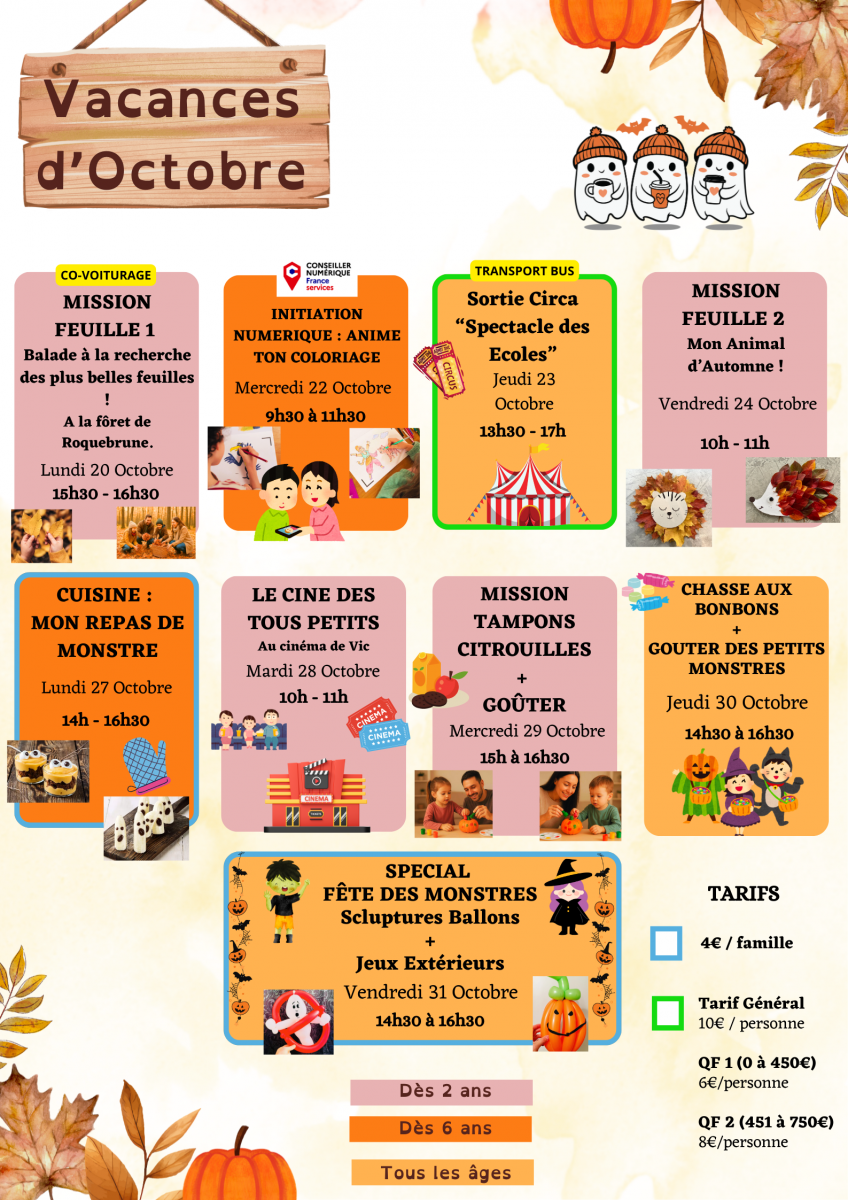 Ouvert durant les vacances scolaires, et certains samedi, un programme est établi par la Référente Famille selon vos demandes et vos envies.